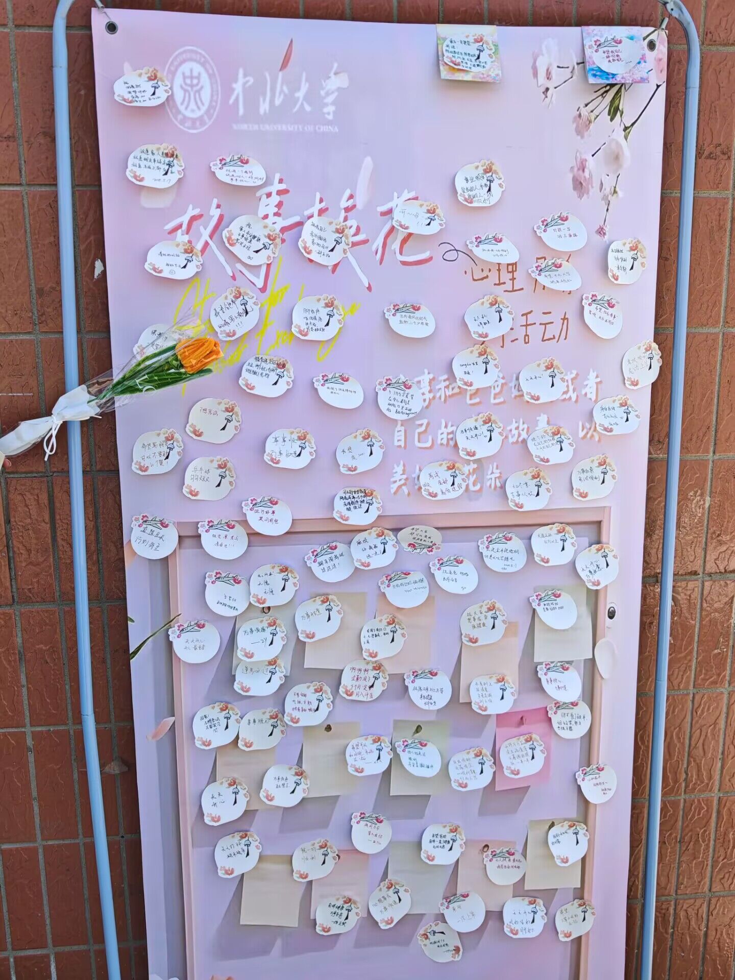 团委学生会心缘坊于2025年5月15日上午10点在中北大学龙山餐厅门前进行了“故事为种,心花共生”活动。