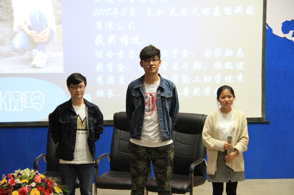 全体学生能够以此次优秀事迹报告会为契机,努力学习,奋力拼搏,祝愿大家在大四毕业之际收获美丽的青春!”
