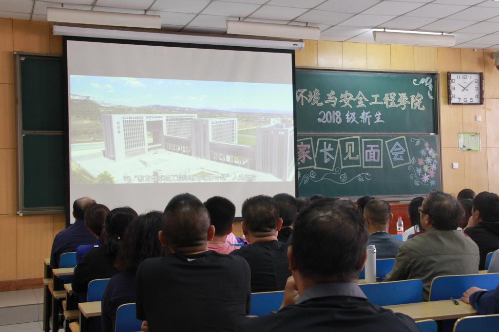 在11309H教室举办2018级新生家长见面会。院党委书记赵树森、党委副书记张少明、特种能源技术与工程学科部副主任王建华、环境工程学科部副主任乔怡娜、新生班班主任王保国、陈靓、谷磊磊、赵雅欣出席了本次会议。
