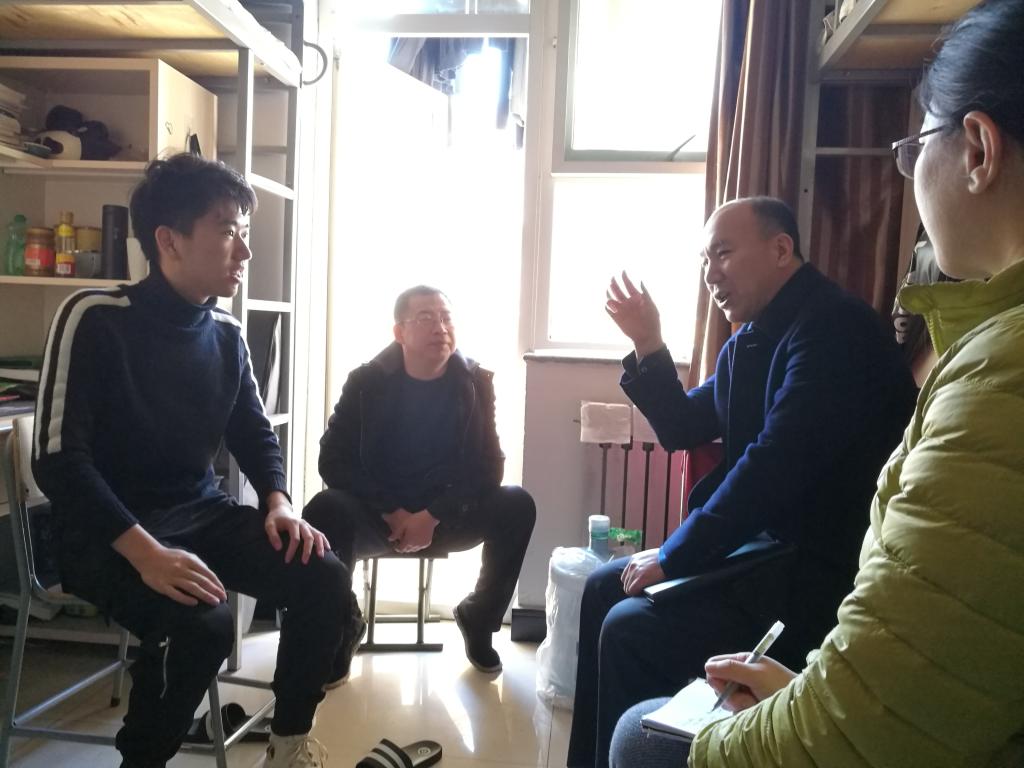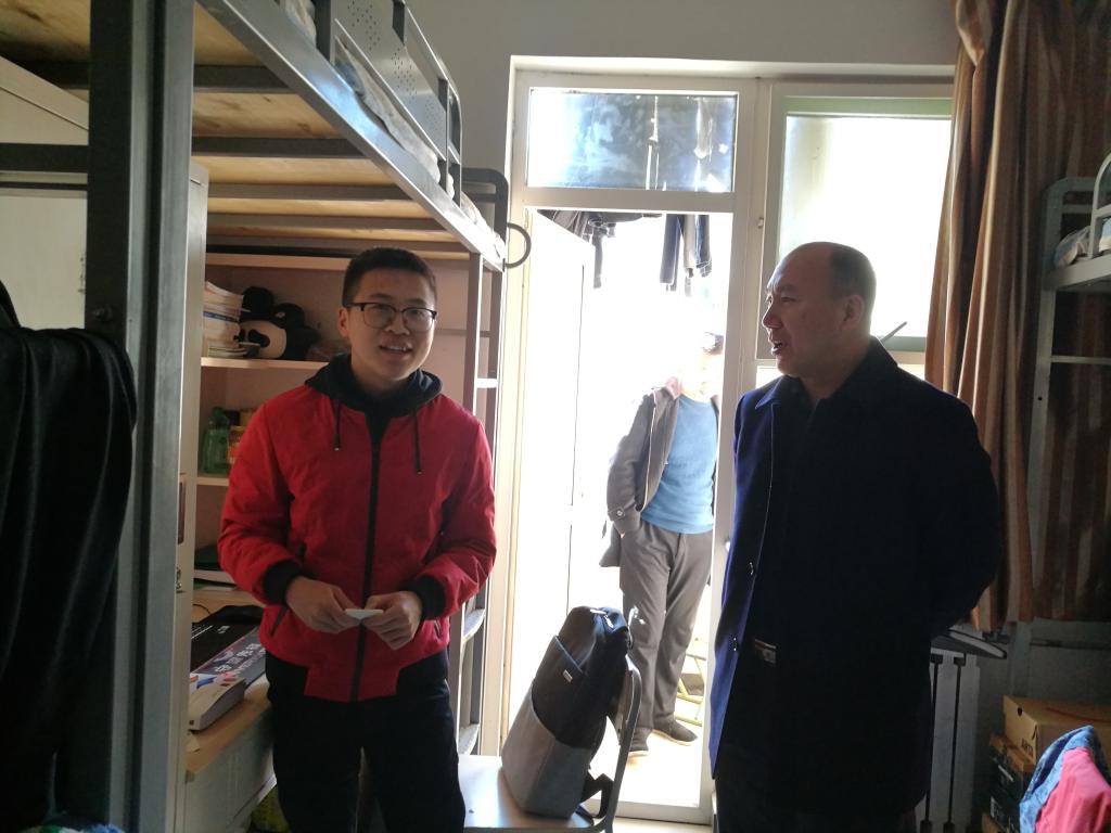 党委书记赵树森、党委副书记张少明、辅导员深入学生宿舍,了解学生生活学习情况。