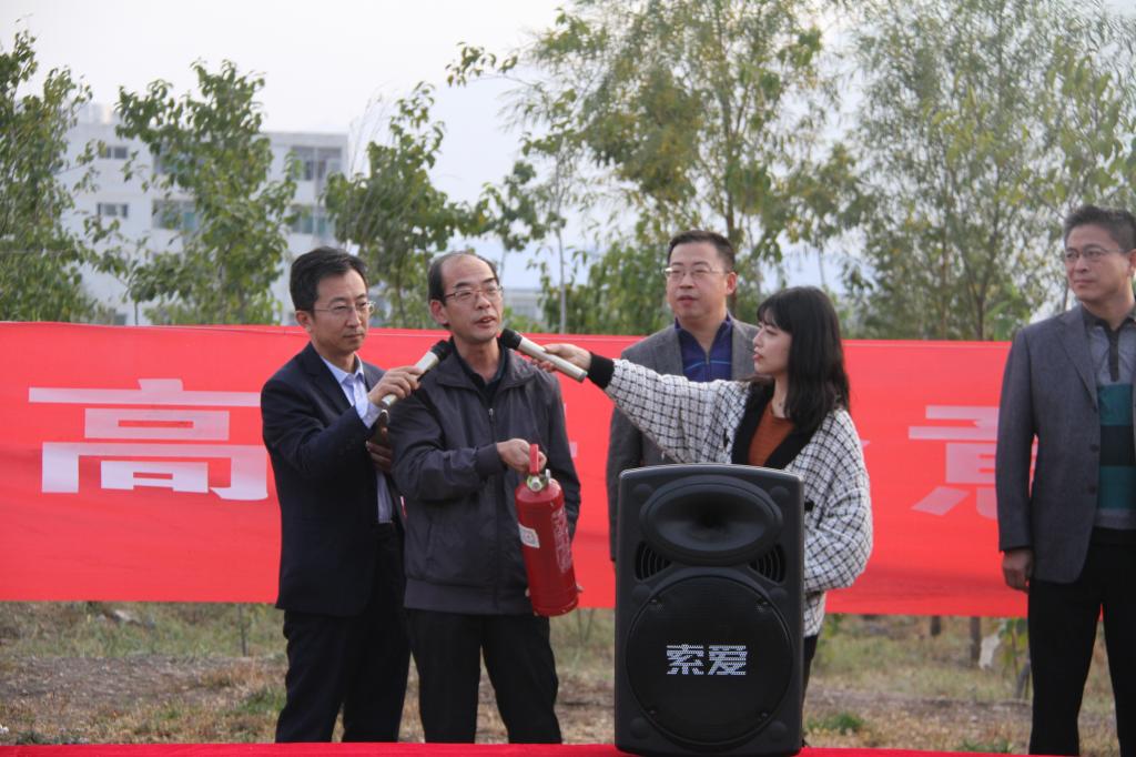 10月22日下午16:30,警铃从低层到高层依次拉响,同学们在听到警铃后迅速有序地撤离宿舍,前往北外环的疏散集中地。在同学们全部到达疏散集中地后,保卫处安全科向同学们介绍了干粉灭火器的使用方法。安全员点燃了在空地上事先准备好的木料,将干粉灭火器提到距火源适当位置后,让喷嘴对准燃烧最猛烈处,拔去保险销,压下压把,对大火进行扑灭。