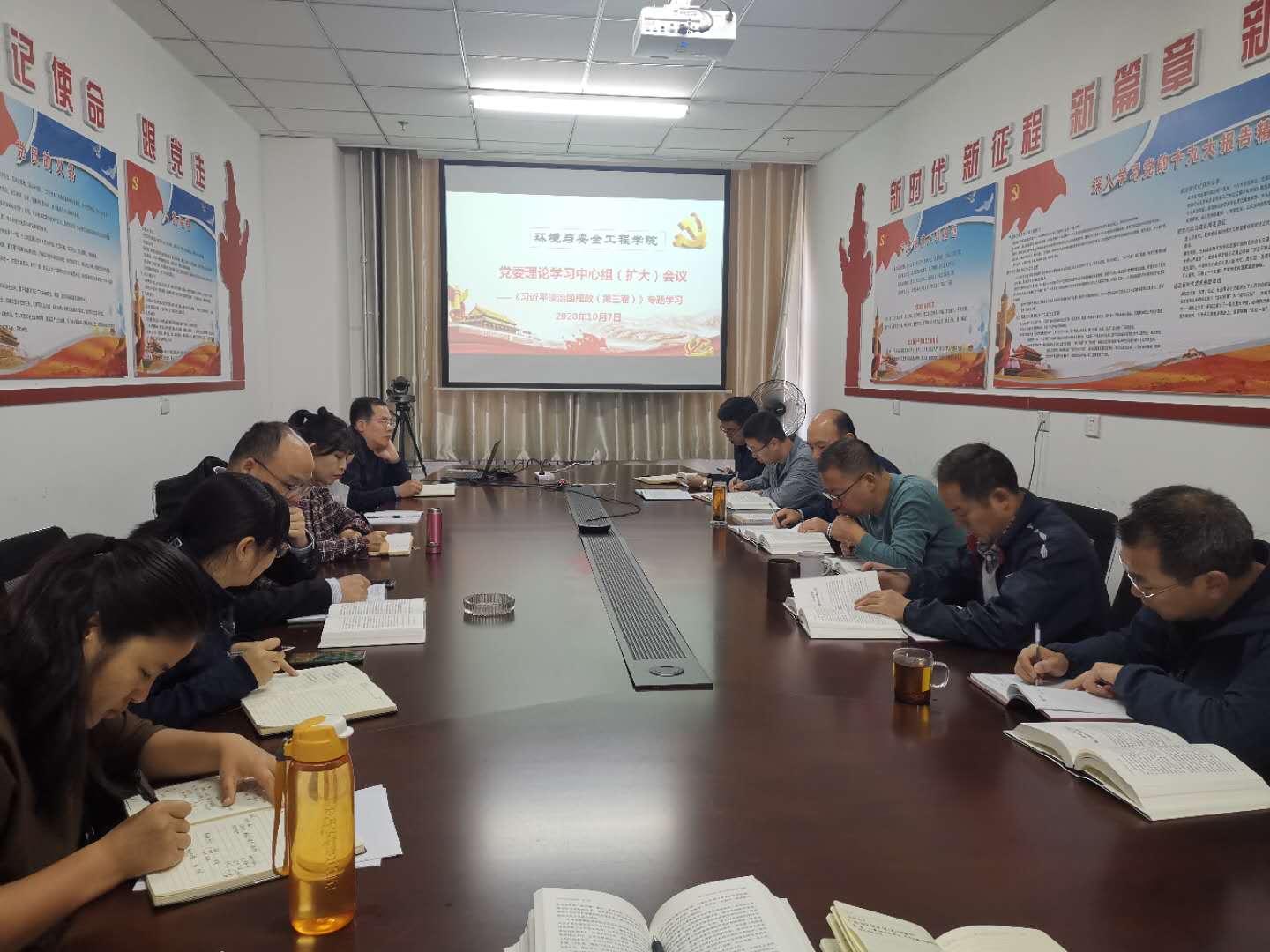 赵树森同志首先带领大家系统学习了《习近平谈治国理政》(第三卷)第八部分:“ 增强忧患意识,防范化解风险挑战。”并要求大家要深刻领悟做好意识形态工作的重大意义,尤其是在全球疫情形式严峻的前提下,要不断提高政治站位,始终牢牢掌握意识形态工作领导权,增强斗争本领,讲究方式、方法和斗争艺术,把防范化解重大风险工作做实做细做好,经风雨、见世面、壮筋骨,切实做到守土有责、守土尽责。