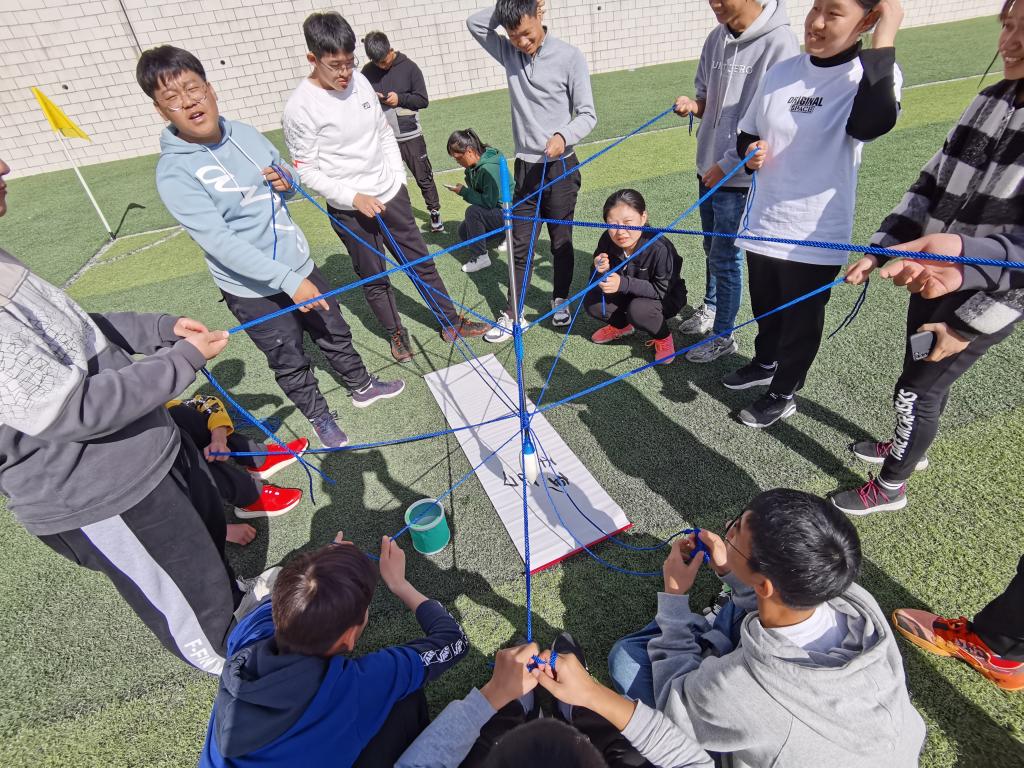 为了提高队伍内的交流合作意识,一场紧张又刺激的“破冰行动”拉开帷幕。在这期间同学们戮力同心,由开始的通过运气与体力来赢得比赛,经过伙伴间的交流与合作,研究出了一套又一套高效又简单的方法。在团建空隙的总结上,经过张铁成老师的启发下,班级同学认识到了沟通、交流、总结经验、团结合作的重要性,只有戮力同心,方得破冰远行。
