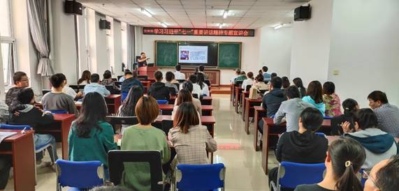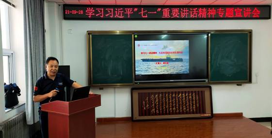 在科学楼C座901会议室举行了学习贯彻习近平总书记“七一”重要讲话精神专题宣讲活动,活动特邀中北大学党史学习教育宣讲团成员——蔺玄晋同志作了题为《学习习近平“七一”讲话精神,扎实推进国防和军队现代化建设》的专题讲座。全体教工党员和学生党员参加了宣讲会,会议由综合办主任秦胜东同志主持。