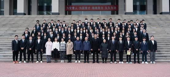 副书记张少明,辅导员陈靓、李佳丽、谷磊磊、赵雅欣、张铁成、郭士柱、史秀琴,学生骨干及各班级学生代表。