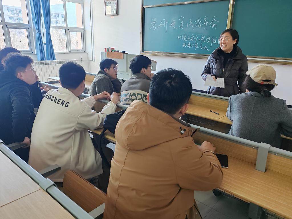 各系开展考研复试指导交流会。环境工程系主任卢静、土木工程系教师董彦莉、特种能源技术与工程系教师李云路、安全工程系副主任曹卫国分别为本专业考生进行复试指导交流。