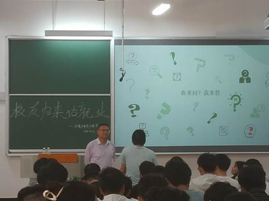 讲座伊始,环境工程系主任卢静为李诚校友颁发了“企业教师”聘书。讲座中,李诚向同学们分享了自己及其公司优秀员工的学习和工作经历,并向同学们介绍了企业概况和主营业务等方面内容,畅谈了环境工程专业的现状与未来。他鼓励同学们科学分析当前就业环境,树立正确的就业观念,积极开展求职行动。讲座现场氛围热烈,同学们积极提问,李诚耐心细致地一一解答。最后,李诚邀请同学们到他的公司参与实习实践,为今后就业积累工作经验。讲座结束后,毕业于同济大学的新入职教师李旭飞老师就考研问题也和同学们做了交流。