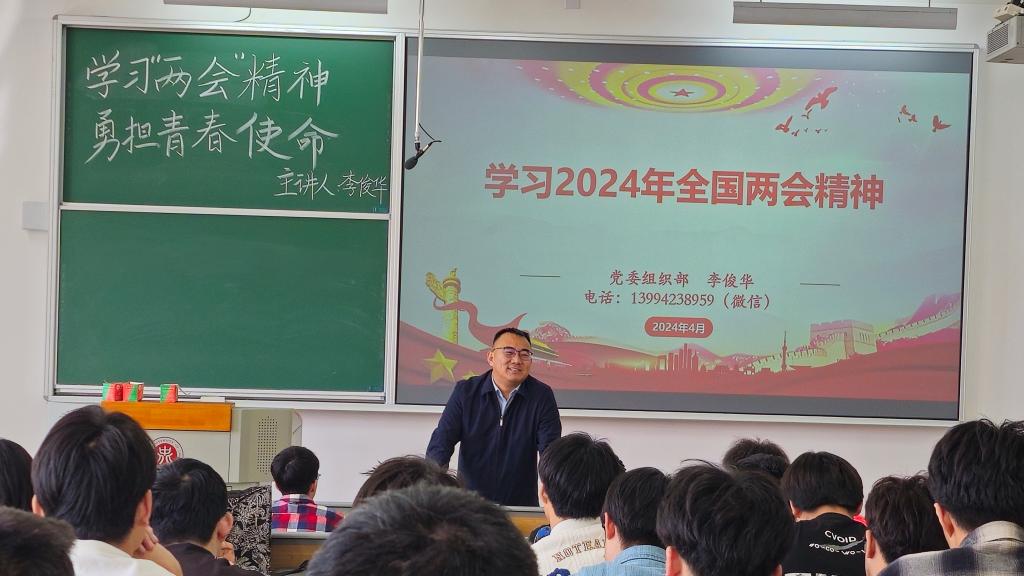 李俊华部长首先向大家介绍了“两会”的基本情况及重大意义,详细解析了会议中提出的关于青年和教育的政策导向。他引用了多个会议中的案例,生动展示了政府在教育科技和青年发展方面新举措和新期待。
