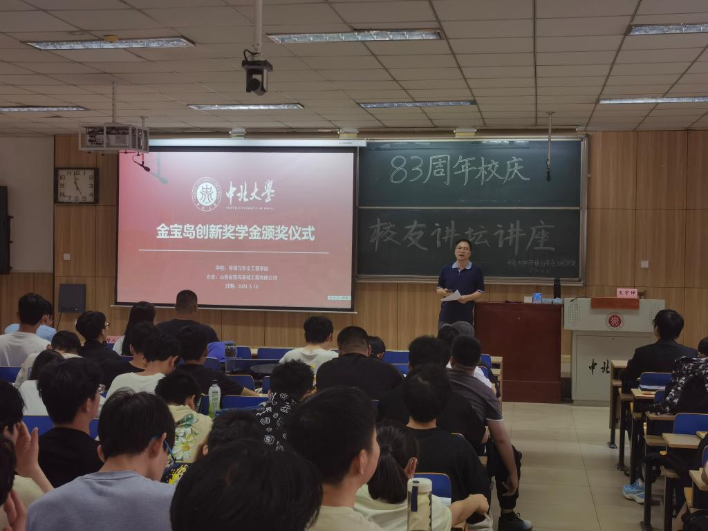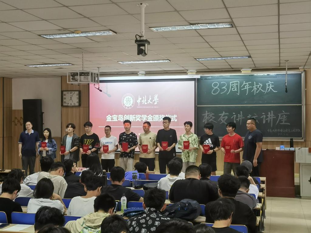 举行了金宝岛创新奖学金颁发仪式。颁奖仪式上,文宇坤总经理介绍了山西金宝岛基础工程有限公司基本情况,对获奖的同学表示衷心的祝获!韩云山主任宣布获奖名单,张浩文,李忠豪等30位研究生和本科生获得此次奖项。获奖学生梁磊同学发表了获奖感言,他表达了对学校老师、对文宇坤副总经理和金宝岛基础工程有限公司的感谢,并表示在之后的学习生活中将不断提升自我,完善自我,以优异的成绩回报母校、回报社会。