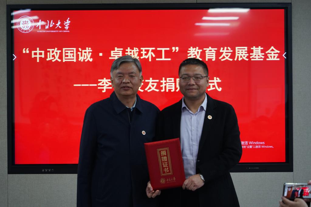 赵贵哲副校长为李诚总经理颁发捐赠证书
