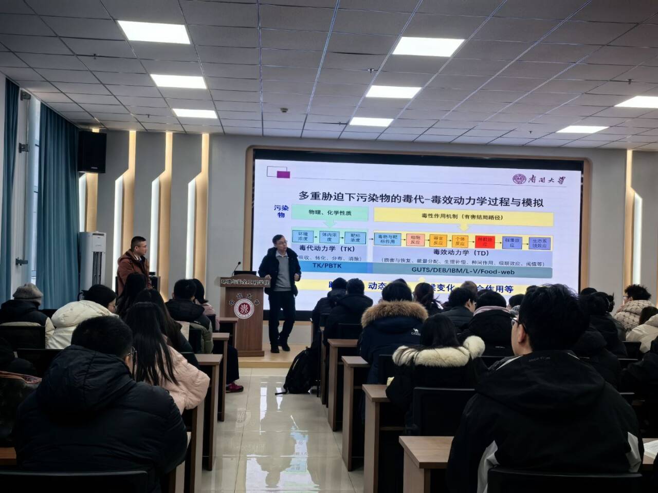 邀请在环安楼A115学术报告厅,讲述了以“复杂环境下典型污染物的毒代-毒效过程、机制与模拟”为题的学术报告。