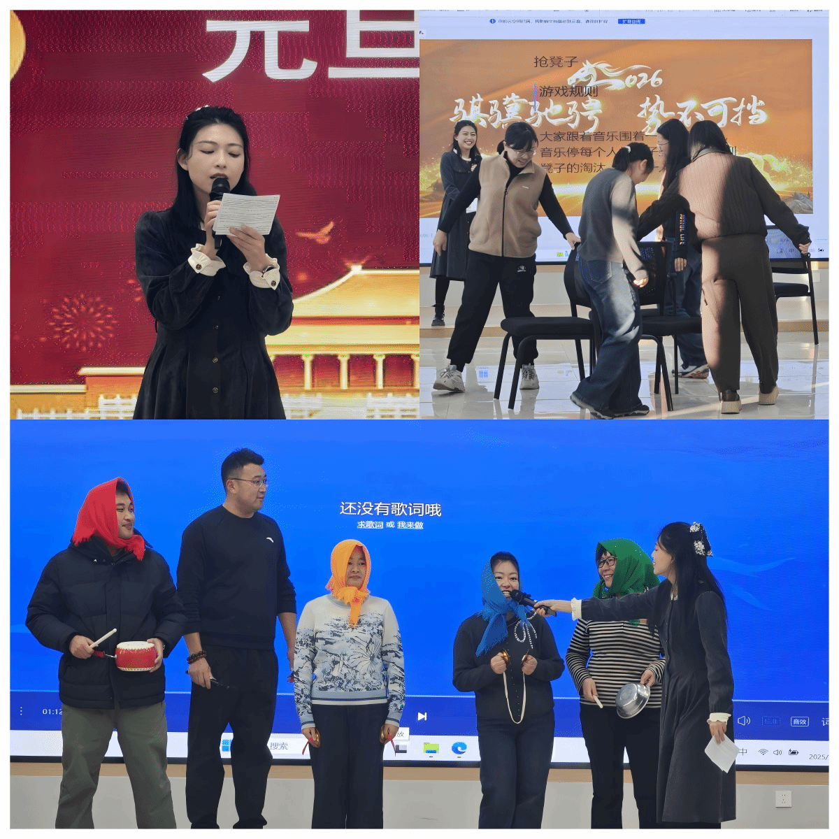 全体教职工欢聚一堂,载歌载舞庆佳节,同心聚力话新程,共同沉浸在辞旧迎新的喜庆氛围中。