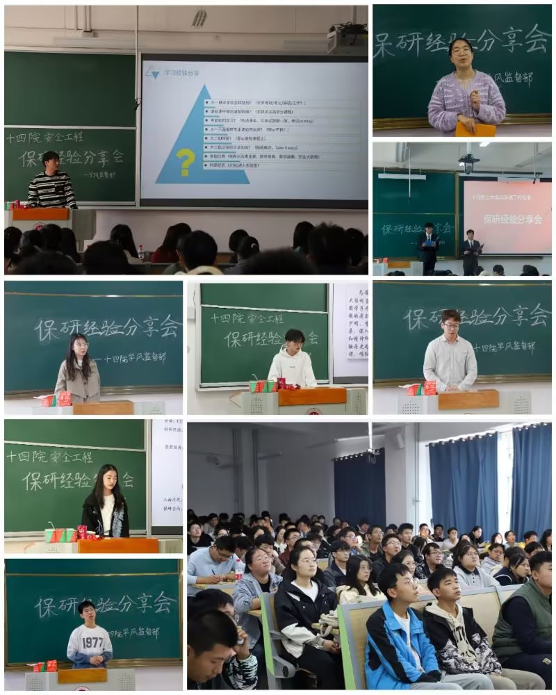 分别在17101H、17105H、17205H举办安全工程专业、环境与土木工程专业、特种能源技术与工程专业保研经验分享会,教学科科长秦清风、辅导员赵雅欣,推免学生代表、大一至大三部分学生参加会议。